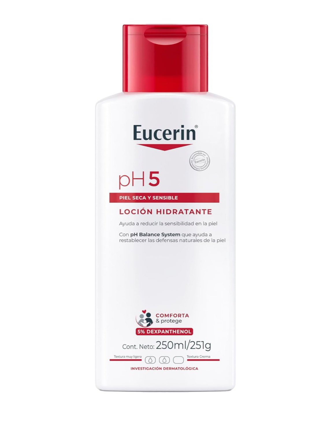 La línea Eucerin pH5 ha sido especialmente formulada para responder a las necesidades de la piel seca y sensible. El exclusivo sistema Eucerin pH Balance restablece el nivel óptimo de pH de la piel y refuerza sus defensas naturales, haciéndola más resistente a los factores ambientales y reduciendo su sensibilidad. Muchos de los productos también contienen Dexpantenol, conocido por sus propiedades regeneradoras.
